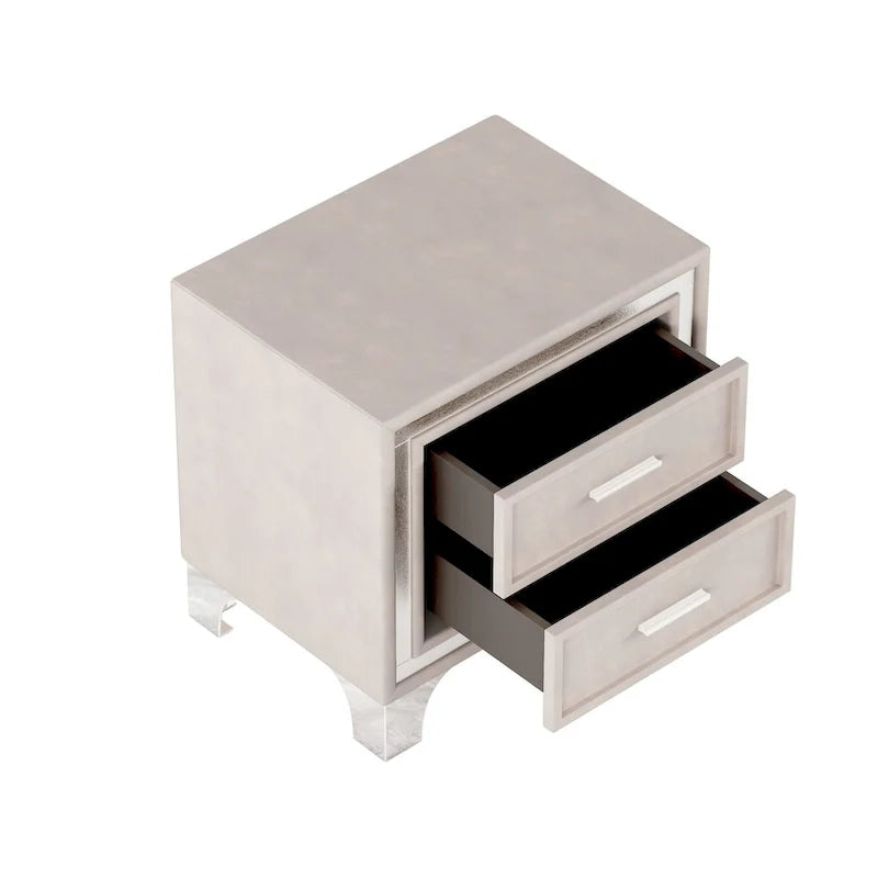 - [Durable Quality] The bed frame is made of solid MDF and Plywood, come with metal feets,providing a dense and strong support for up to 700lbs. The nightstand is made of sturdy engineered wood and high quality velvet fabric, easy to clean and maintain to ensure a long service life.