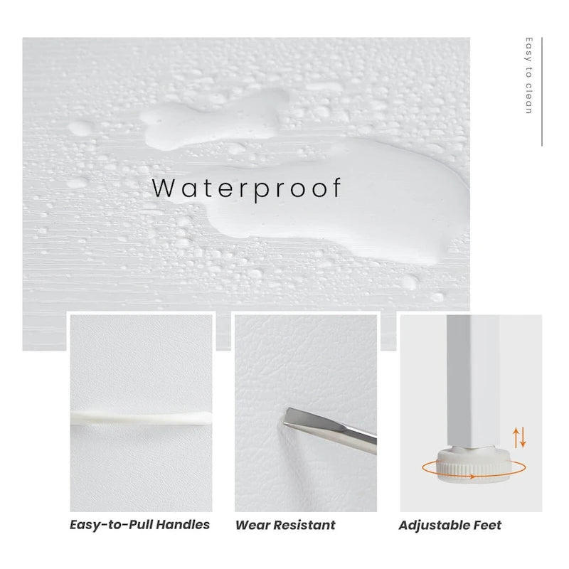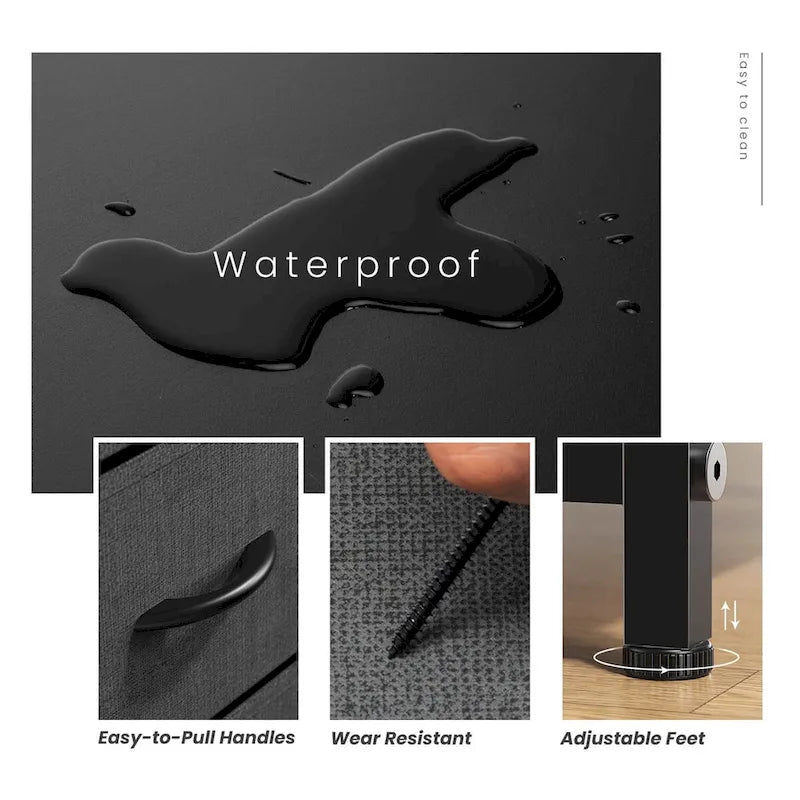 With 4 drawers, you can divide the area and get exactly what you need. Use a thick metal frame to keep the fabric dresser stable, with 4 adjustable feet to protect your floor from scratches, and you can adjust the balance of the chest of drawers in smallareas. An auxiliary feature can be added if the dresser is attached to the wall, as it prevents uneven floors or tilting caused by children climbing.