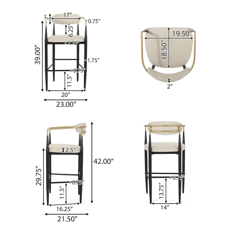 BARSTOOL HEIGHT: Choose an accessory that is the perfect size for you and your furniture. Each barstool is 23.00 W x 21.50 D x 42.00 H with a seat height of 29.75 inches. You will love how much your space can transform with the simple addition of this charming barstool set.