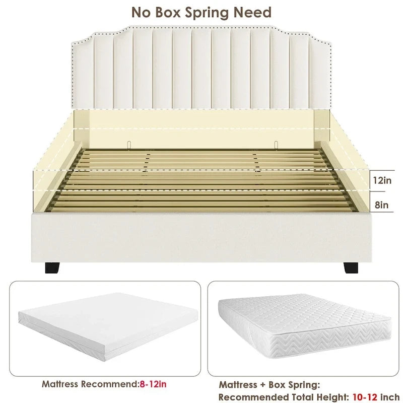 Make full use of the storage space under the upholstered bed frame queen,perfect for organizing household essentials and freeing up your living area. Transform chaos into order effortlessly.