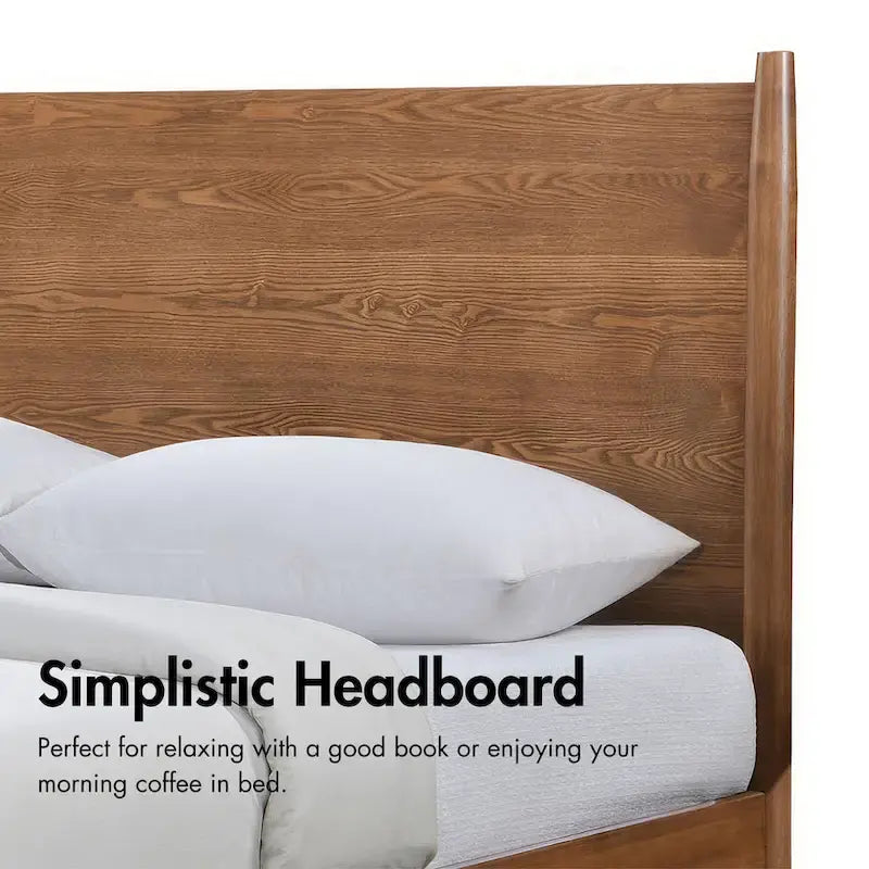 Create a complete bedroom retreat with this four-piece set, featuring a bed, nightstand, dresser, and mirror. The sleek headboard pairs beautifully with the walnut and natural wood grain veneer, while the dresser and nightstand provide ample storage with smooth glides and stylish pulls.