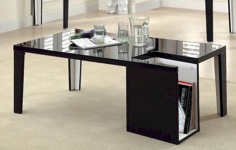 The Lesk Coffee Table is striking and accentuating with its high gloss duotone finish and simplistic Modern design. Cutout compartment distinguishes the design, holding your favorite reads for quick access and hidden storage. Available in Red, White or Black finishes, each piece futures a unique inner accent. Solid wood construction ensures lasting use and finishes easily blend to your home style.