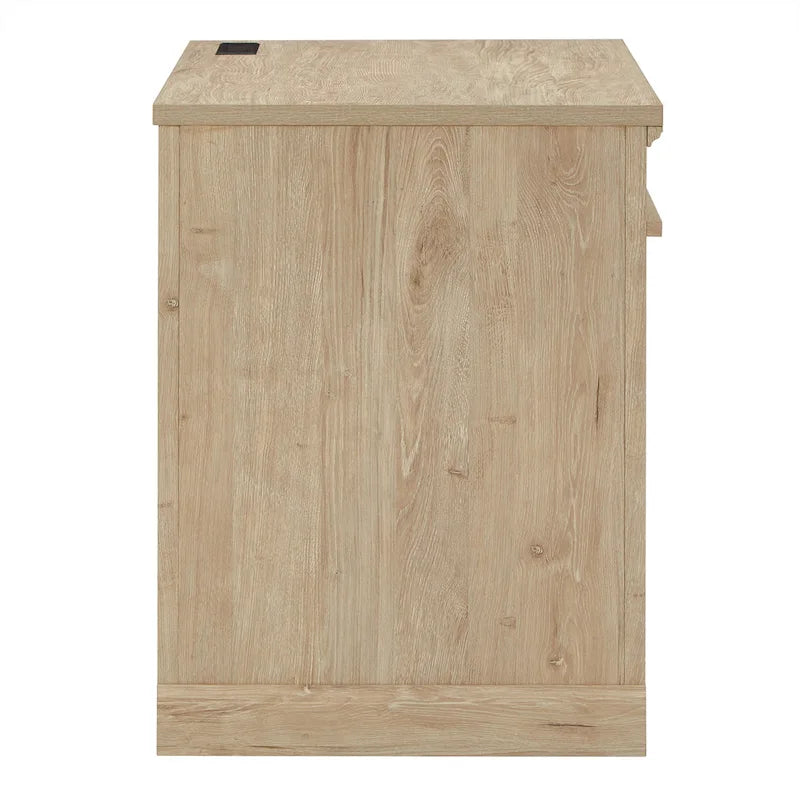 Organize your home office with the Hinesburg 35 in. Desk with USB Chargers by iNSPIRE Q Classic. This sleek, cottage design provides plentiful workspace. Includes easy-access two (2) USB ports and two (2) power outlets on the top, so you can keep your devices powered up. The center drawer open easily and is large enough to hold papers and small supplies. Complete the set with two 4-tier/5-tier Adjustable Bookshelves with Drawers. This bookshelf blends function and beauty to bring a unique style to your home or office space. With two adjustable shelves, you'll be able to store and display different sizes of your books and dcor items. A large file drawer will keep your storage concealed for a tidy and clutter-free room. The wood finish washed color surface with a vintage black knob; this bookshelf will last you for years to come.