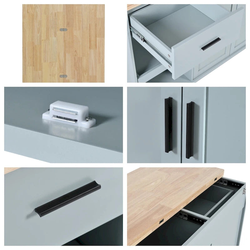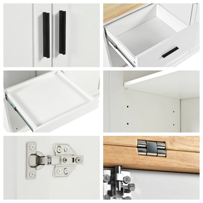- Smart Storage System: Organized kitchen management through modular components including an adjustable-height drawer, pull-out shelf, dual cabinets, and dedicated towel rack. Customizable shelving adapts to diverse item dimensions, effectively eliminating countertop clutter.