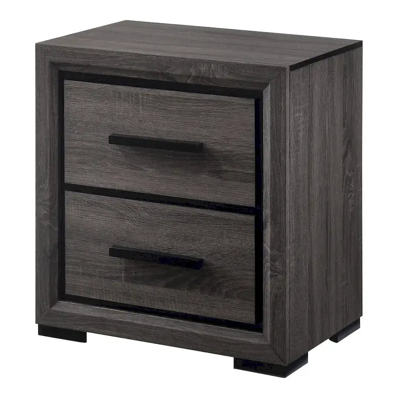 - Two-drawer nightstand and five-drawer chest features finger pull handles