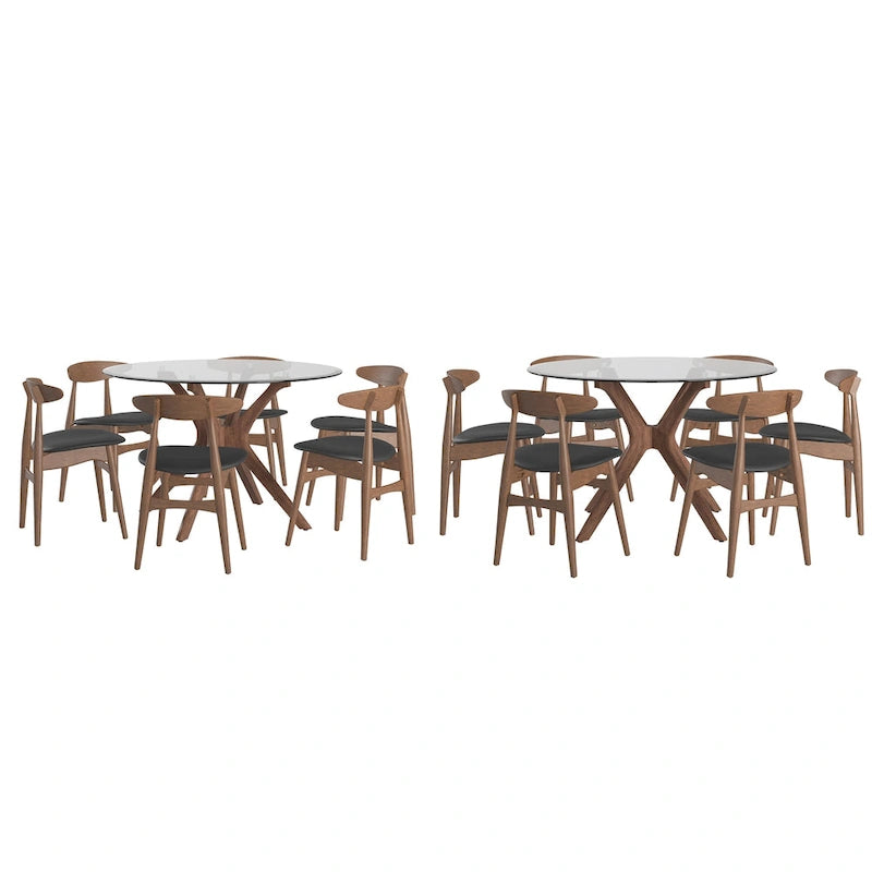 Elevate your dining experience with the combination of our Mid-Century Walnut Finish Round Dining Set. This dining set brings together contemporary elegance and mid-century flair, starting with the table's smooth, round top and distinctive X-cross base with splayed legs, all finished in a warm walnut to easily blend with your existing color schemes and dcor. The dining chairs complement the table's aesthetic with their tapered legs and curved seat backs, while foam-padded seats ensure comfort through every meal. Both the table and chairs are crafted from durable rubberwood, promising resilience and style for years to come. Dress this set up or down to suit any occasion, knowing you have a timeless and comfortable dining arrangement that will last through countless gatherings.