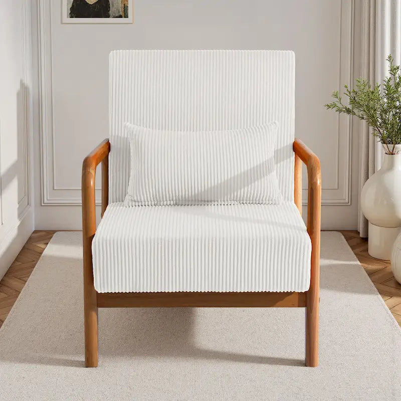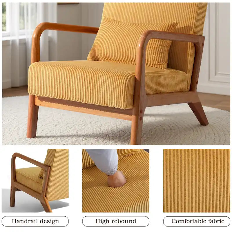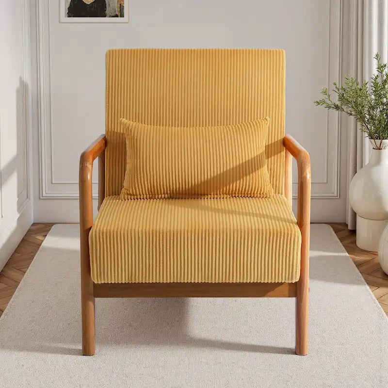 Uixe Mid Century Solid Wood Upholstered Corduroy Accent Chair
